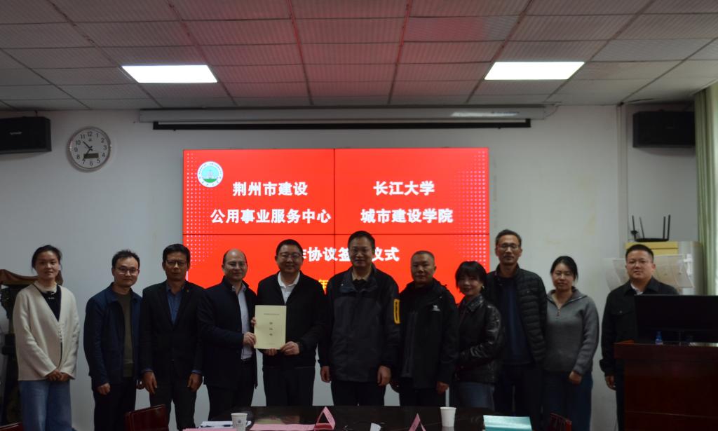 (通讯员 刘焱华)10月30日上午,国产成人视频与荆州市建设公用事业服务中心校地合作签约仪式在9教208会议室顺利举行。荆州市建设公用事业服务中心副主任、党总支副书记黄映爽一行五人到访,国产成人视频领导班子及相关学科教师代表共同见证这一重要时刻。签约仪式由国产成人视频