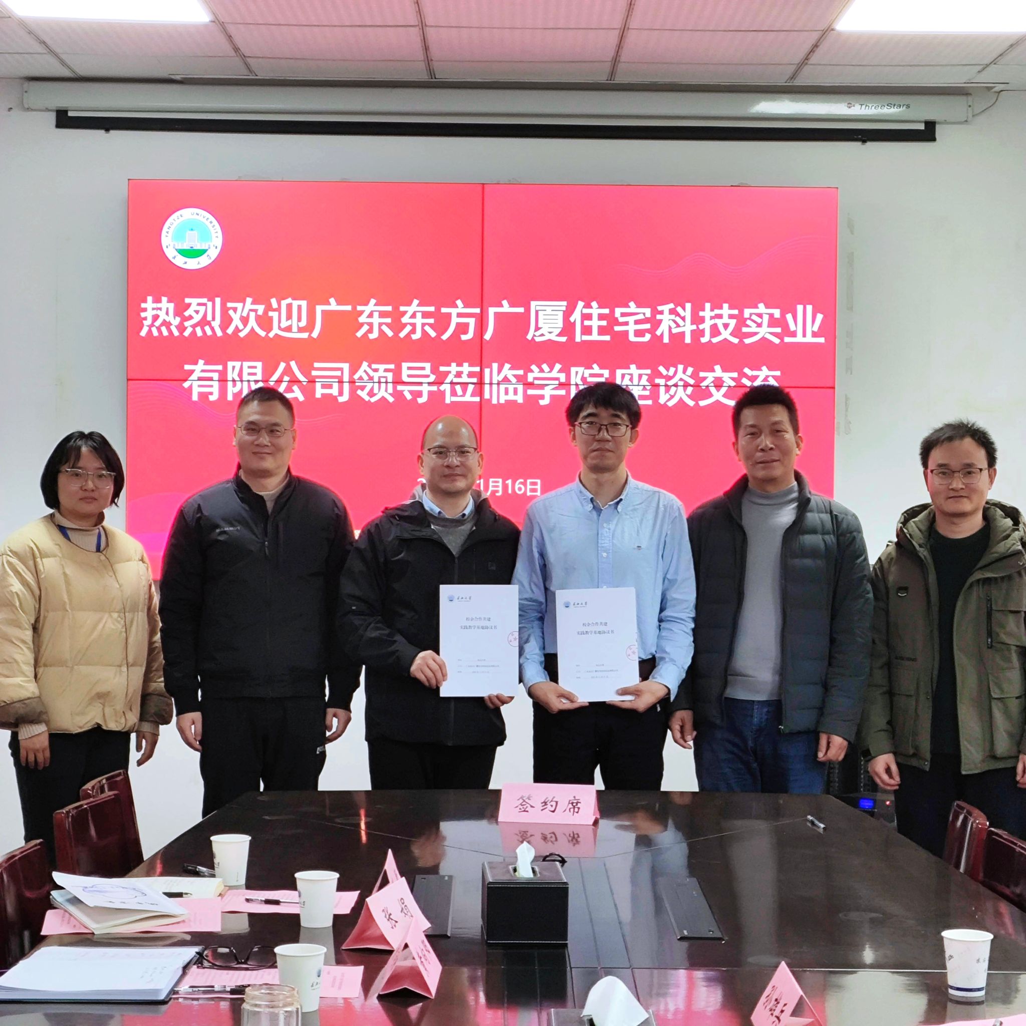 与广东东方广厦住宅科技实业有限公司(以下简称“东方广厦”)在9教208室签订校企合作协议。根据协议,双方将在人才培养、技术创新、平台共建等多方面开展深度合作。