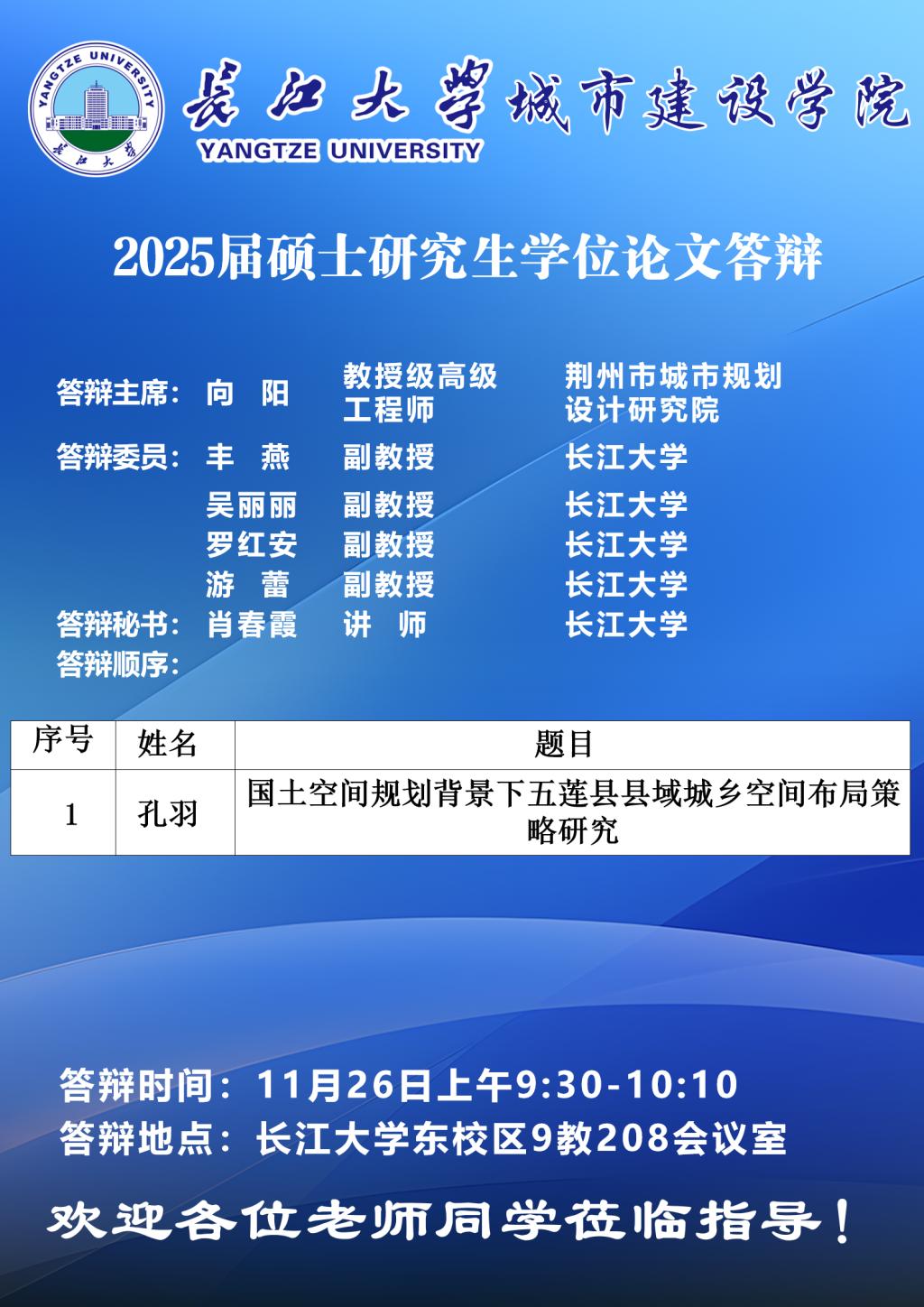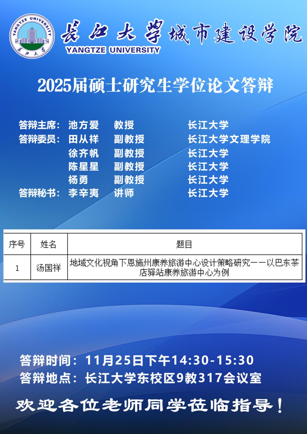 国产成人视频 2025届12月硕士研究生学位论文答辩公告(二)【山承洋、汤国祥、孔羽】