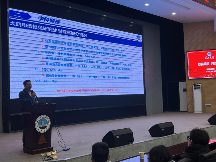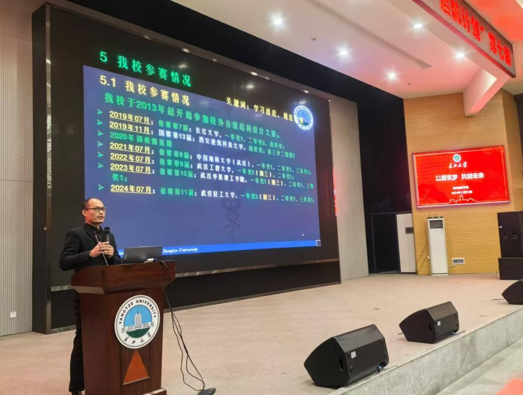 教师代表黄德文对全国大学生结构设计竞赛做了专题介绍。详细介绍了该竞赛的基本内容、赛事章程及具体流程等。